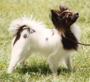 | Leo (papillon) our friend and show dog. He lives with Arrow and Cora and participates in classes with us. |