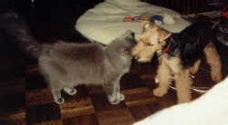 | Dan - a member of the Bailey household in 1987, enjoyed playing with Welsh terrier puppies. |