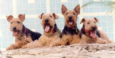 | From Baileywyc to Wysiwyg Since 1985, Baileywyc Welsh terriers have made their mark in AKC conformation and obedience rings, in temperament tests, in earthdog trials, at other performance events, and in homes throughout the midwest where they are loved as pets. Lucy Bailey's careful breeding program has produced dogs that are sound of mind and body, enthusiastic competitors, and delightful companions. Baileywyc dogs have always been shown naturally, with no cosmetic changes other than those allowed or required by the AKC Welsh terrier breed standard: docked tails, dewclaws removed, and coats hand-stripped. This philosophy -- "the best Welsh terriers come naturally" -- led Lucy and Linda Schulte to adopt a new kennel name in the year 2000: WYSIWYG Welsh terriers, where "what you see is what you get." Begining with WYSIWYG Litter #9, we have discontinued docking tails. |